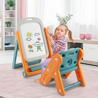 Adorable standing art easel includes a chair for kids and children