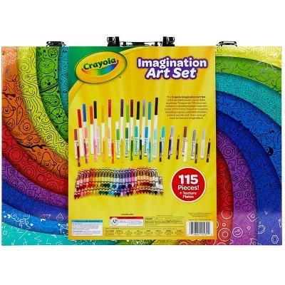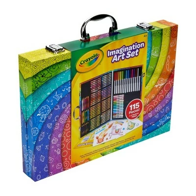 Give the gift of color with the Crayola Imagination Coloring Set! Featuring 115 coloring tools, this all-in-one portable art studio keeps art supplies organized and protected. Young artists will love bringing their Crayola Markers, Colored Pencils, and Crayons along for creative adventures on-the-go! Makes a great rainy day boredom buster, or entertaining car activity for kids. Features 14 Super Tips Markers, 15 Short Colored Pencils, 14 Pip Squeaks Skinnies Markers, 56 Crayons, 15 Large Sheets of Paper, 3 Rubbing Plates, and a How to Guide. Makes a great holiday or birthday gift for girls and boys, ages 4 and up.