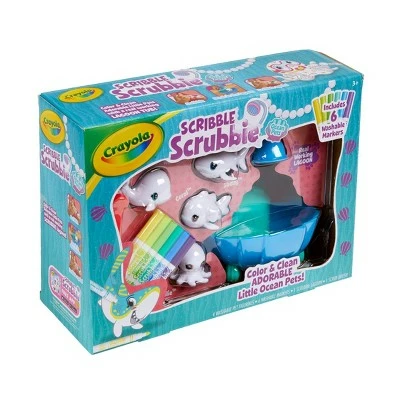 Head off the beaten bath and dive into adventure with the Crayola Scribble Scrubbie Pets Lagoon Playset! This fun toy for boys and girls features 4 Animal Figurines, 6 Washable Markers, 1 Scrub Brush, and a Blue Lagoon Tub. Young explorers will love adding unique designs to their crew with a slew of Crayola colors! Critters include a Shark, Octopus, Whale, and Clown Fish. When theyβre ready for something new, they can POP ’em in the lagoon and use the kid-powered shower to rinse their fuzzy friends in style! For more washable fun, grow your kiddos Scribble Scrubbie squad with additional expansion packs (sold separately). Makes a great gift for kids ages 3 and up.