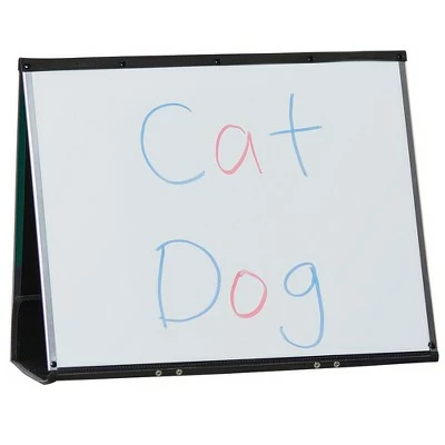 This easel is three classroom-friendly products in one sleek, slim-fold design. Just unfold and fasten the hook-and-loop fastener tabs to create a 2-sided magnetic board, a 2-sided whiteboard, or a flannel board. Great for announcements and reminders, and center activities, and is perfect for use at home, in the classroom, or in the office. Sits conveniently on desk, table, or floor. Approximately 20″W x 15″H.