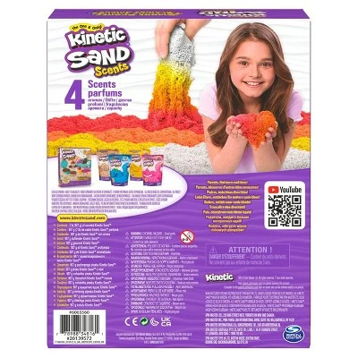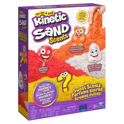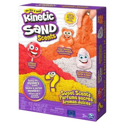 - The 4-Pack has a total of 2lb of scented Kinetic Sand. Featuring Sour Gummy, Lollipop, Cotton Candy, and a mystery scent! It just got a whole lot sweeter with scented Kinetic Sand!