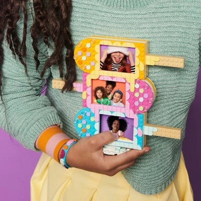 Looking for a fun arts-and-crafts gift for kids aged 6 and up? Check out this creative LEGO DOTS Ice Cream Picture Frames & Bracelet (41956) kit! This cool activity set features 3 ice-cream-themed picture frames with sticks and a base, an adjustable slimline bracelet in blue that fits around bigger or smaller wrists, plus lots of colorful tiles. Itβs an easy and intuitive assembly process, so kids can develop their own patterns and make the different canvases uniquely theirs to suit their roomor mood.Display favorite photos and jewelryDOTS sets introduce kids to the joy of LEGO play and creativity as they make and decorate the different sets. Anything goes with this summer-inspired picture frame and bracelet holder set because the magic and control lie in a childβs imagination. DOTS sets make great arts-and-crafts gifts or a fun treat for kids with a passion for creativity.