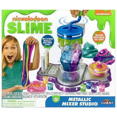 Mix and make your own super metallic Slime with this incredible new Metallic Slime Studio! Includes everything you need to make Slime with less mess β simply add the contents to the Mixer and spin! Add colorants, glitter, confetti, beads and more! Itβs super shiny Slime! Add metallic colorant, metallic beads, holographic glitter and so much more! Even the Slime Mixer is metallic!